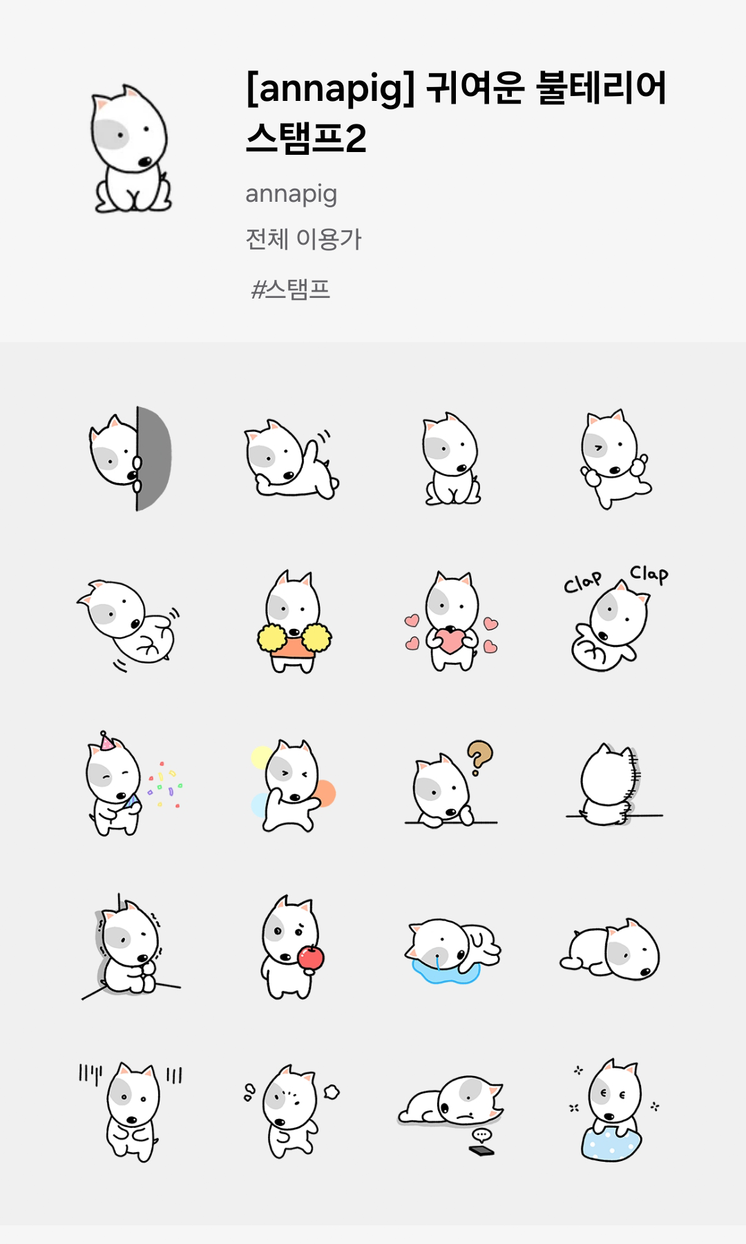 [Galaxy Stamp] Cute Bull Terrier Stamp2|귀여운 불테리어 스탬프2