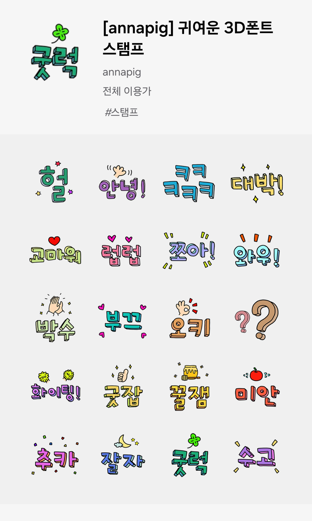 [Galaxy Stamp] Cute 3D Font Stamp|귀여운 3D폰트 스탬프